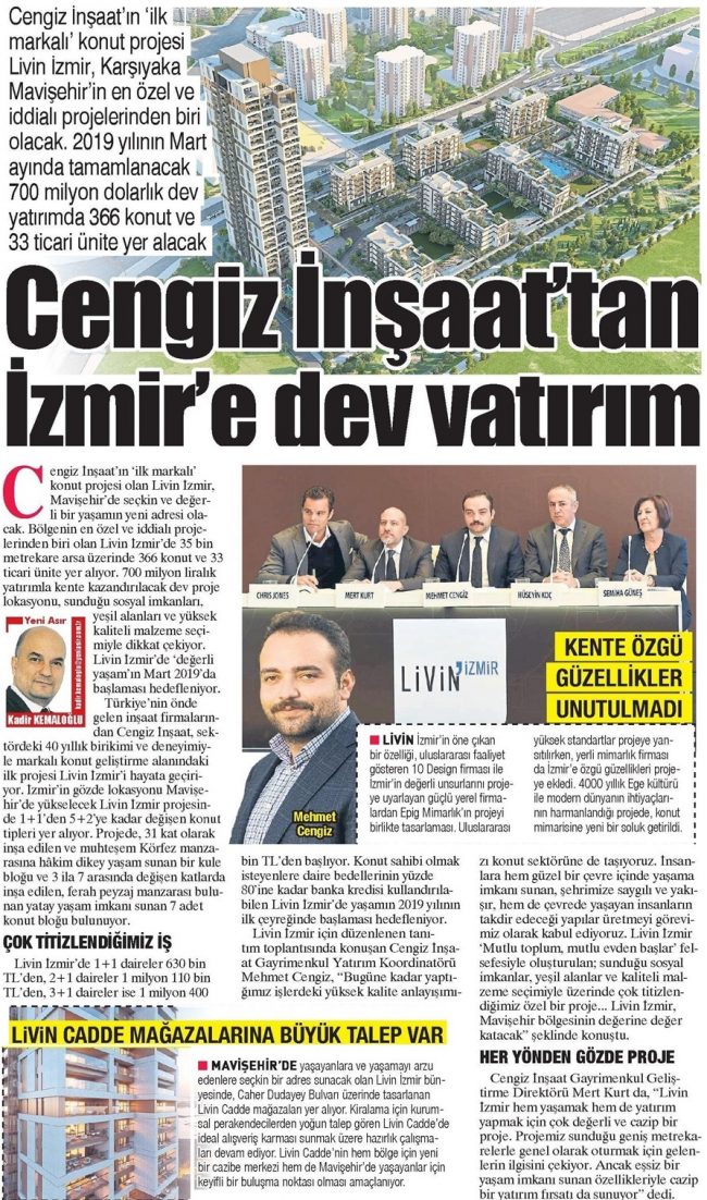 700 MILLION LIRAS PROJECT FROM CENGIZ İNŞAAT TO IZMIR